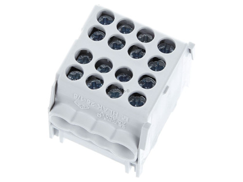 | | Bereich Verteilerbau | Effiziente Energieverteilung für Gebäude und Anlagen. Hier finden Sie leistungsfähige Lösungen für den Aufbau, die Verdrahtung und Montage von Schalt- und Verteilanlagen – vom Wohngebäude bis zur Industrieanlage. Ob Hauptverteiler, Unterverteilung oder spezieller Anlagenverteiler – unsere Produkte erfüllen aktuelle Normen wie IEC 61439. Dank modularer Bauweise, hochwertiger Komponenten und klarer Dokumentation gewährleisten Sie maximale Sicherheit, einfache Erweiterbarkeit und zuverlässige Stromversorgung in Neubau oder Sanierung. | | | | | |  | Hauptabzweigklemme grau HLAK25-1/6 M2 - 8 fach | | Hauptleitungs-Abzweigklemmen 1/6 M2, Minimodular anreihbar, Montage auf 35 mm Tragschiene gem. EN 60715, Farbcodierung entsprechend gültigen Aderfarben, Ui = 1000 V, VDE zertifiziert, Klemmblock verzinnt. Für Aluminiumleiter geeignet. |
