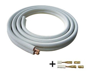 Eine Split-Klimaanlage besteht aus zwei Teilen: einem Innengerät, dem Wärmetauscher, und einem Außengerät, dem Kompressor. Die zwei Geräte sind über eine Kältemittelleitung und über eine Stromleitung miteinander verbunden.